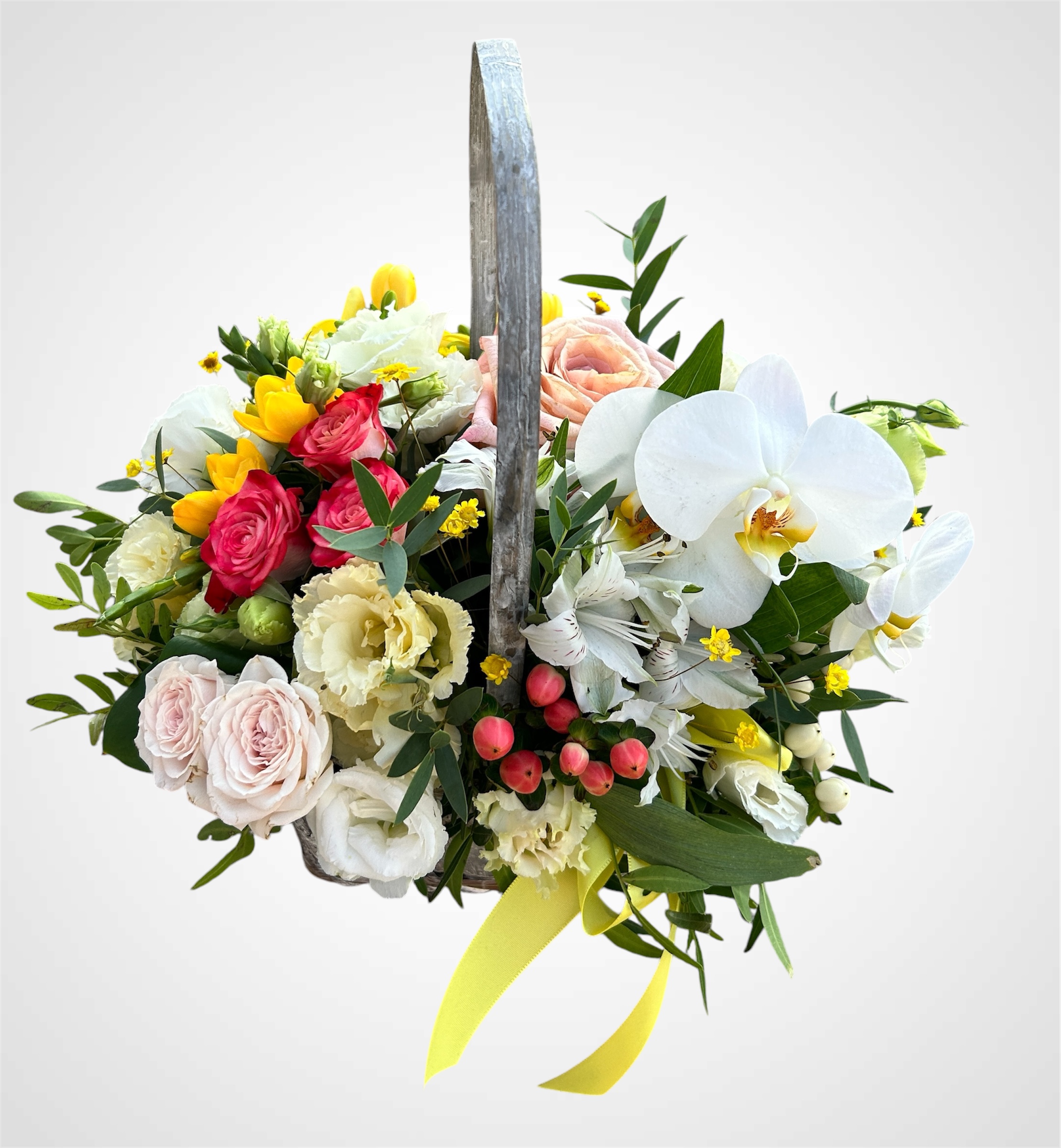 Aranjament floral Armonia florilor este un aranjament conceput pentru a fi daruit la diverse evenimente precum zile onomastice sau aniversare. Aranjament floral Armonia florilor cu minitrandafiri ,frezii si orhidee este perfect pentru un strop de veselie si romantism .Cu o varietate de flori frumoase si culori pastelate ,acest aranjament , cu siguranta va aduce zambete si pozitivitate persoanelor dragi . Aranjamentul floral aduce o nota de eleganta si prospetime , fiind o expresie a bucuriei si rafinamentului . Rasfoieste colectia noastra de buchete si aranjamente florale in magazinul nostru online BucheteBucuresti,cu livrare in aceasi zi sau cu livrare pe timp de noapte . La cerere produsul poate fi insotit de o felicitare cadou scrisa cu mesajul transmis pe nota de comanda sau telefonic.