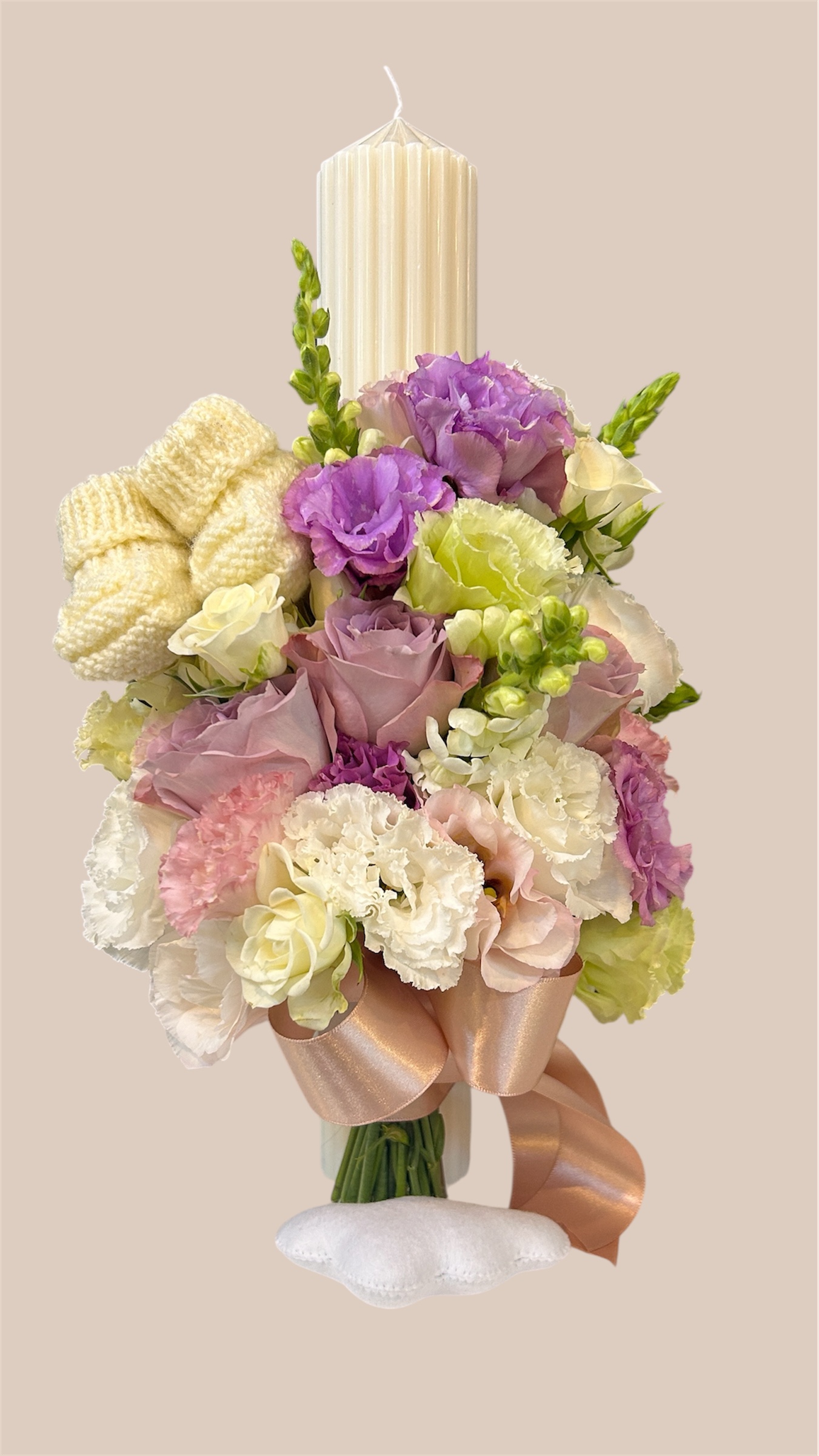 Lumanarile de botez create de BucheteBucuresti sunt un detaliu esential pentru orice ceremonie de botez adaugand eleganta si sacralitate momentului. Fiecare lumanare realizata de BucheteBucuresti este creata in functie de tematica botezului si de dorintele parintilor/nasilor , fiind decorate cu flori naturale, flori criogenate sau flori uscate, diferite accesorii si panglici. Pot fi adaugate elemente precum numele copilului , data botezului pentru a face lumanarea un obiect deosebit si simbolic . Floraria online BucheteBucuresti foloseste design personalizat pentru realizarea lumanarilor de botez prin folosirea de flori naturale elegante care sunt integrate cu grija in designul lumanarilor, lumanari din ceara naturala de albine sau lumanari din ceara de diferite dimensiuni. Flori precum trandafiri, hortensii, frezii, orhidee , lisianthus, ranunculus , bujori sunt frecvent folosite pentru a crea un efect vizual placut si rafinat.
